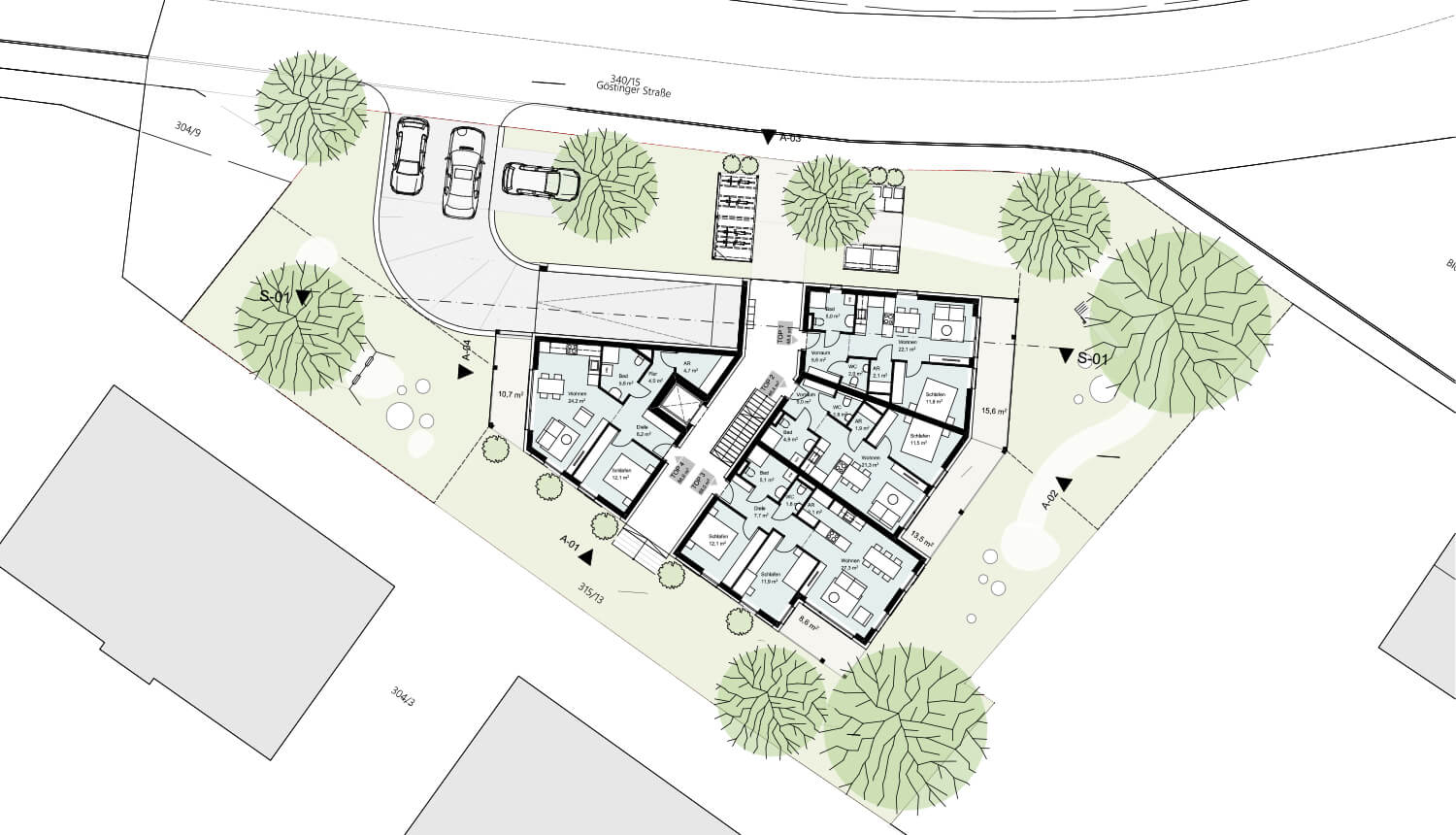 In einer ruhigen Wohngegend im Westen von Graz bietet das an die Göstingerstraße angrenzende Grundstück den idealen Bauplatz für ein neues Wohnprojekt an. Auffallend ist, dass die Liegenschaft von einem hohen Baumbestand umsäumt ist und nur straßenseitig frei davon ist, um einen Blick auf den nördlichen Wald zu ermöglichen.