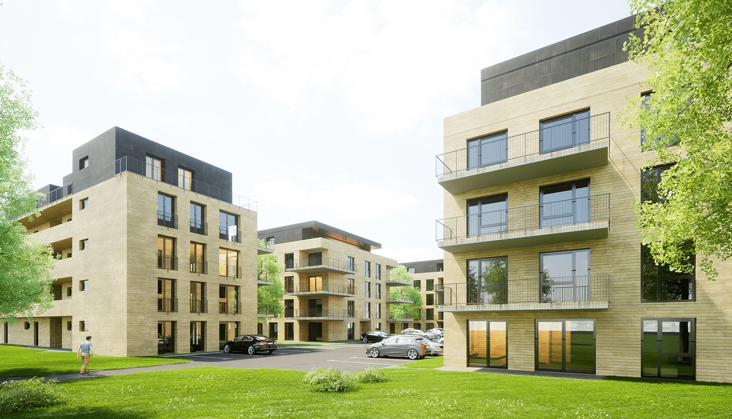 Die Sehnsucht nach einem großzügigen Grünraum und die Intention, aus klimatischer Sicht eine gute Durchlüftung und Lichtdurchlässigkeit des Areals zu gewährleisten, führen zur Auffassung, den gesamten Bauplatz inklusive der alleeartigen Wohnstraße als Park zu verstehen und die Entwicklung der Wohnanlage aus diesem Gesichtspunkt zu forcieren.